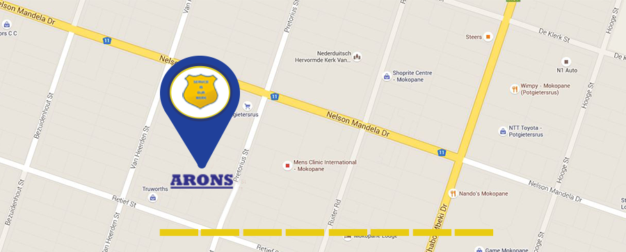 Arons is in the heart of the Limpopo Province of South Africa surrounded by rich mineral resources and abundant flora & fauna. It is 280km north of Johannesburg and about the same distance south of Beitbridge (border with Zimbabwe). It is 150km east of the Botswana border having easy access to Selebi-Phikwe and Francistown.